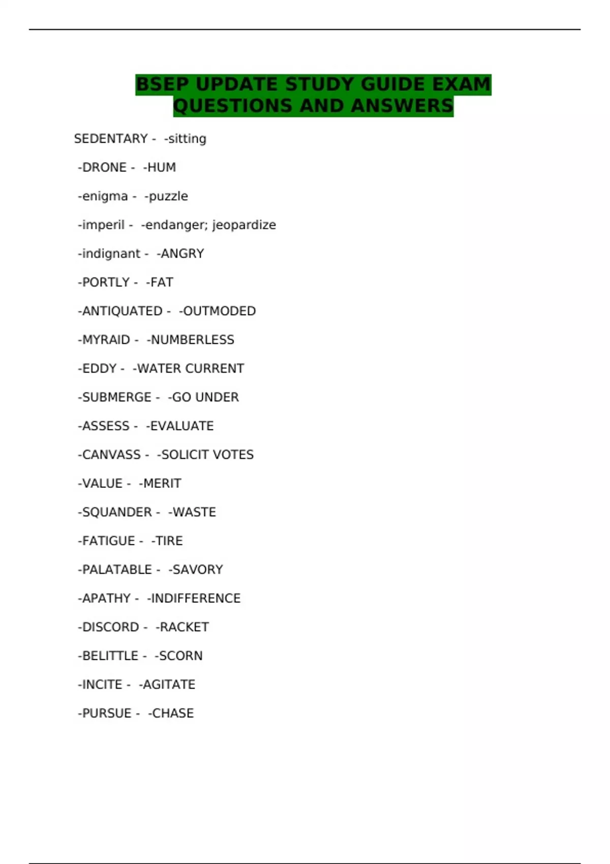 BSEP UPDATE STUDY GUIDE EXAM QUESTIONS AND ANSWERS