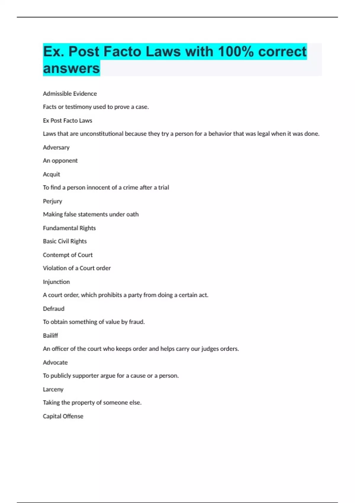 Ex. Post Facto Laws with 100% correct answers