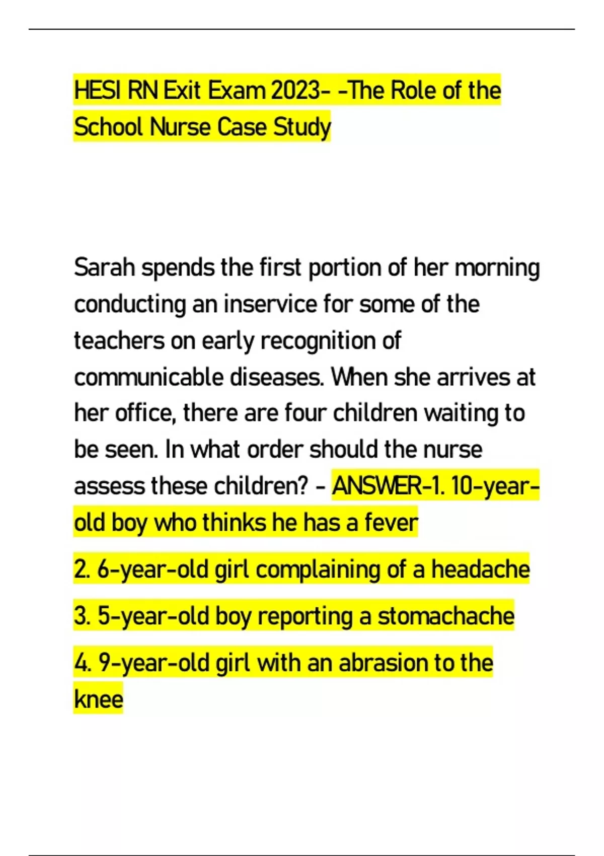 HESI RN Exit Exam 2023- -The Role of the School Nurse Case Study