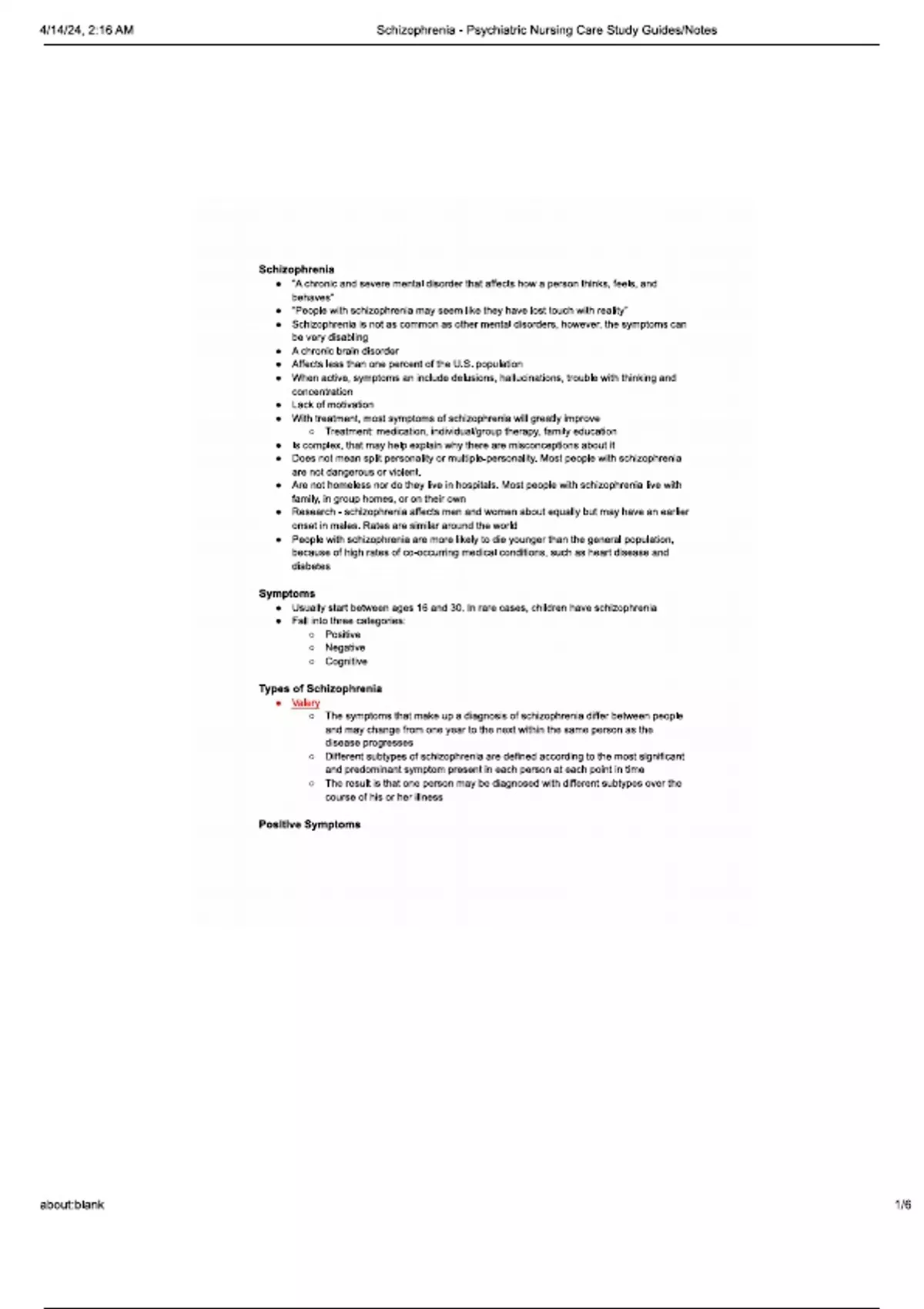 schizophrenia psychiatric nursing notes
