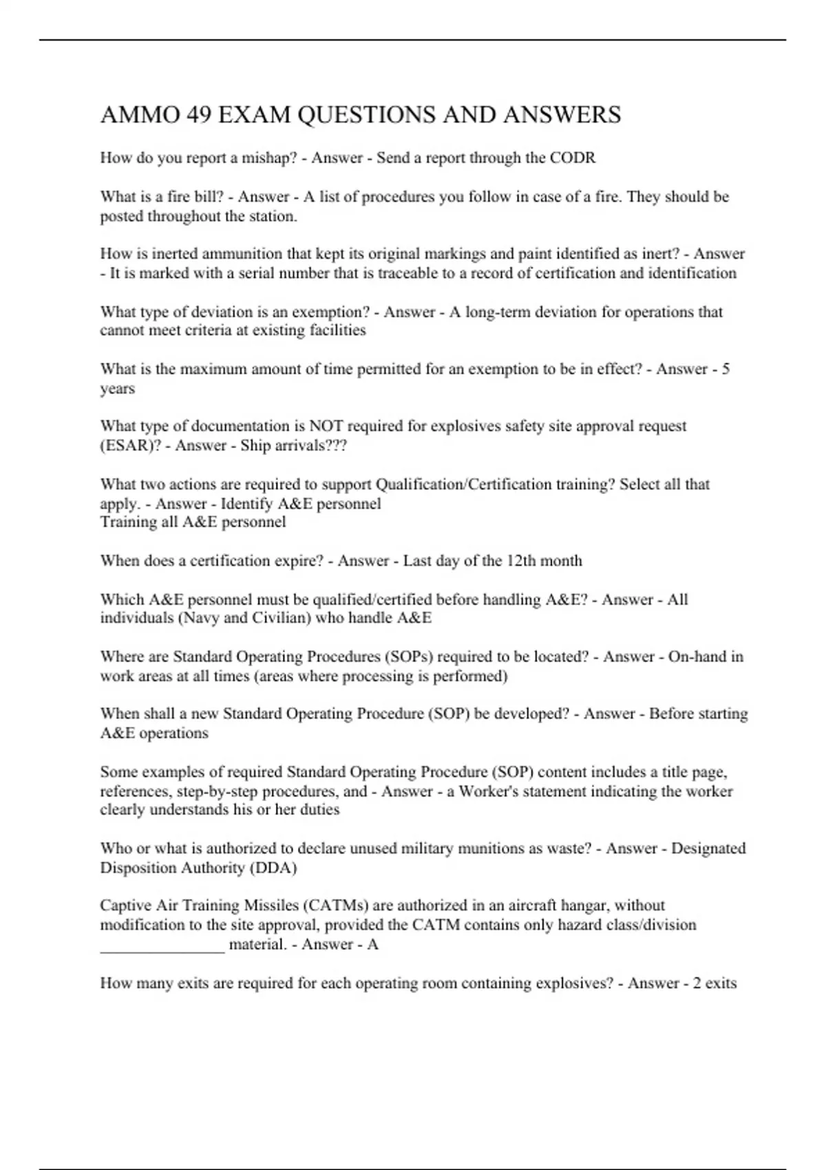 ammo 49 exam questions and answers 2024