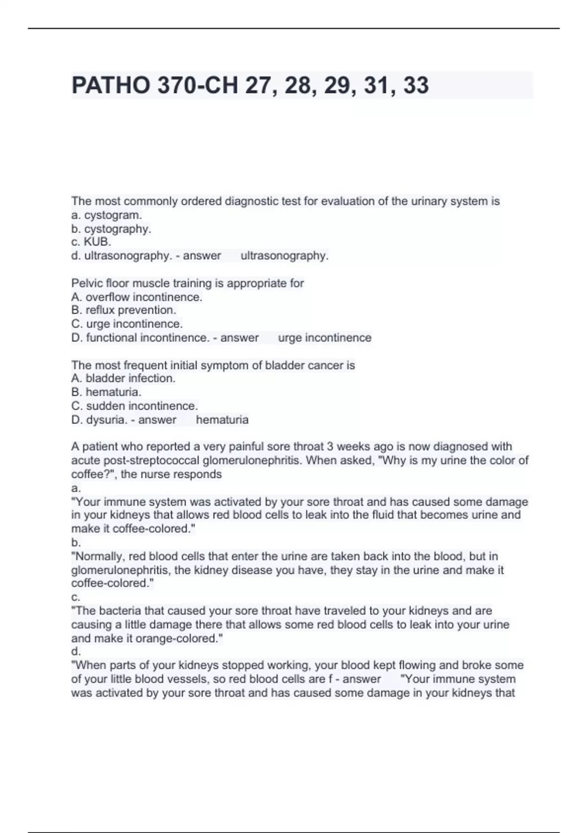 PATHO 370-CH 27, 28, 29, 31, 33 Questions with correct Answers 2024