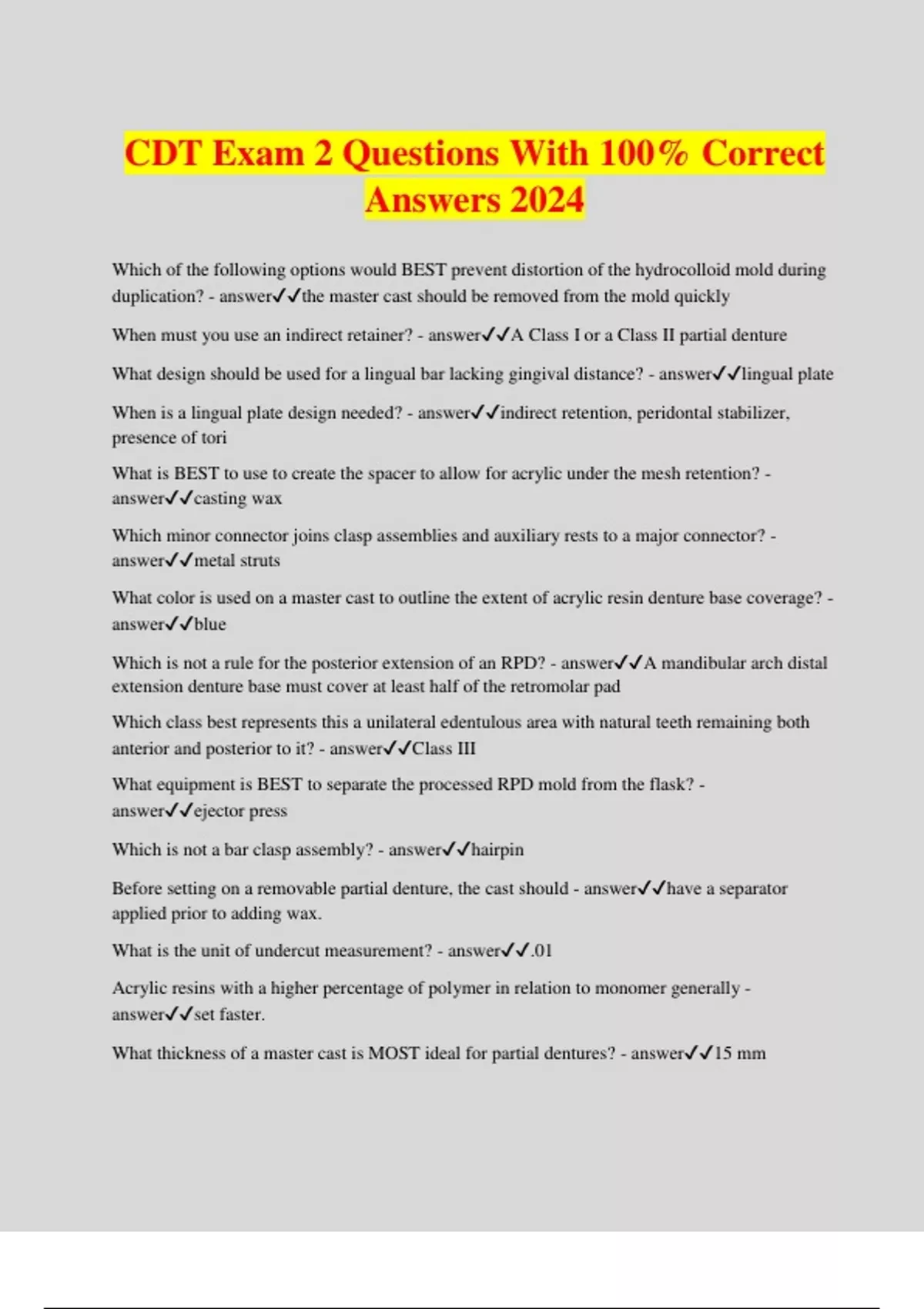 CDT Exam 2 Questions With 100% Correct Answers 2024
