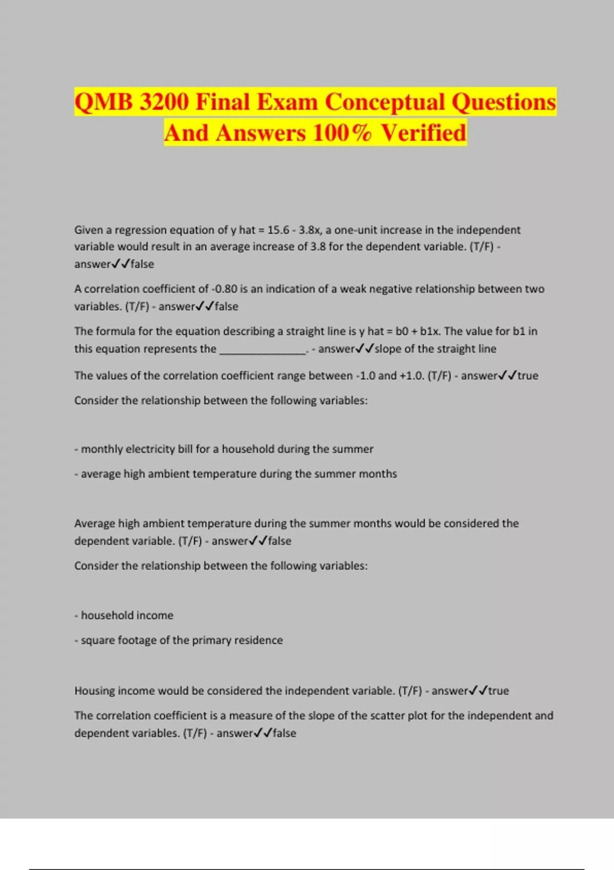 QMB 3200 Final Exam Conceptual Questions And Answers 100% Verified