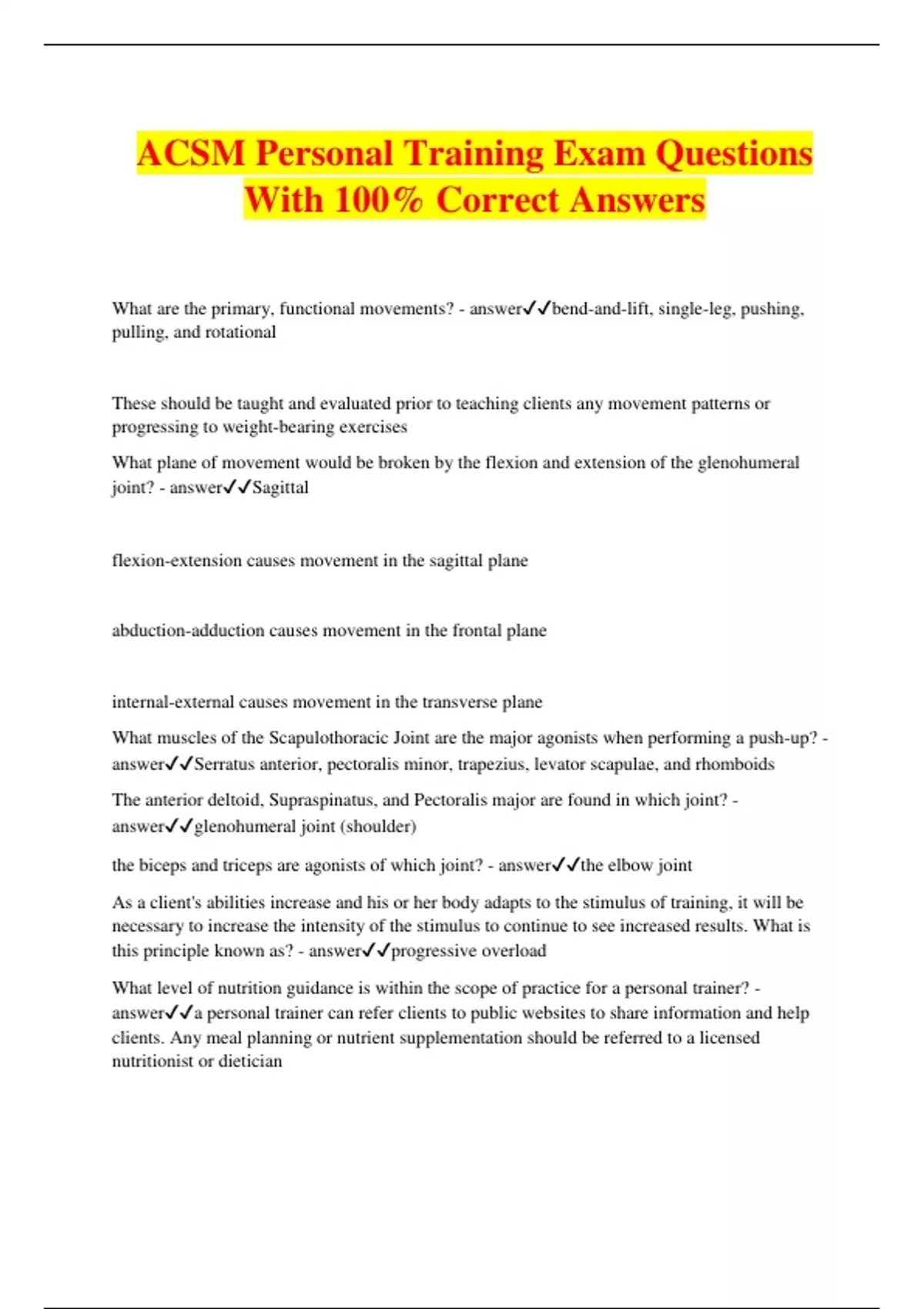 ACSM Personal Training Exam Questions With 100% Correct Answers