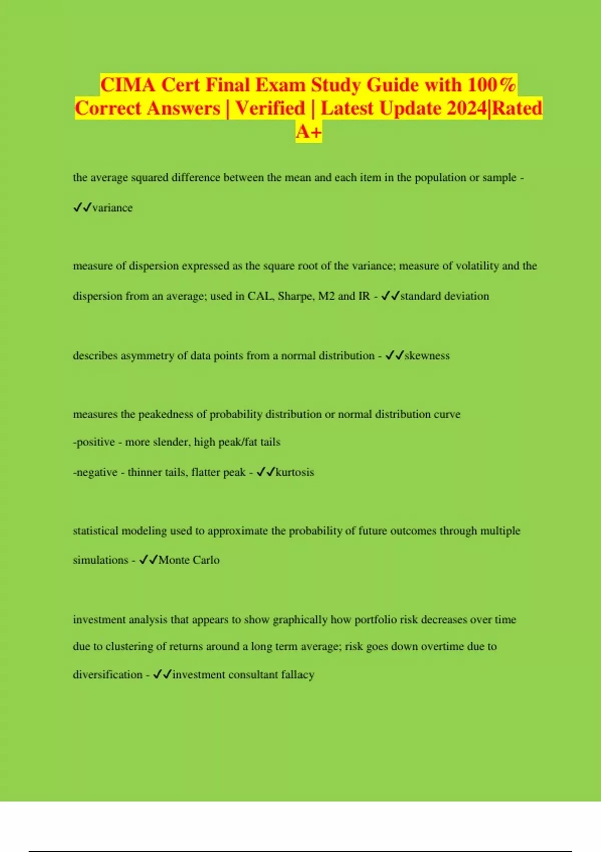 CIMA Cert Final Exam Study Guide with 100% Correct Answers | Verified | Latest Update 2024|Rated A+
