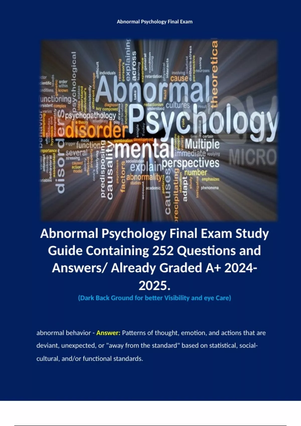 abnormal psychology - Answer: The scientific study of abnormal behavior in order