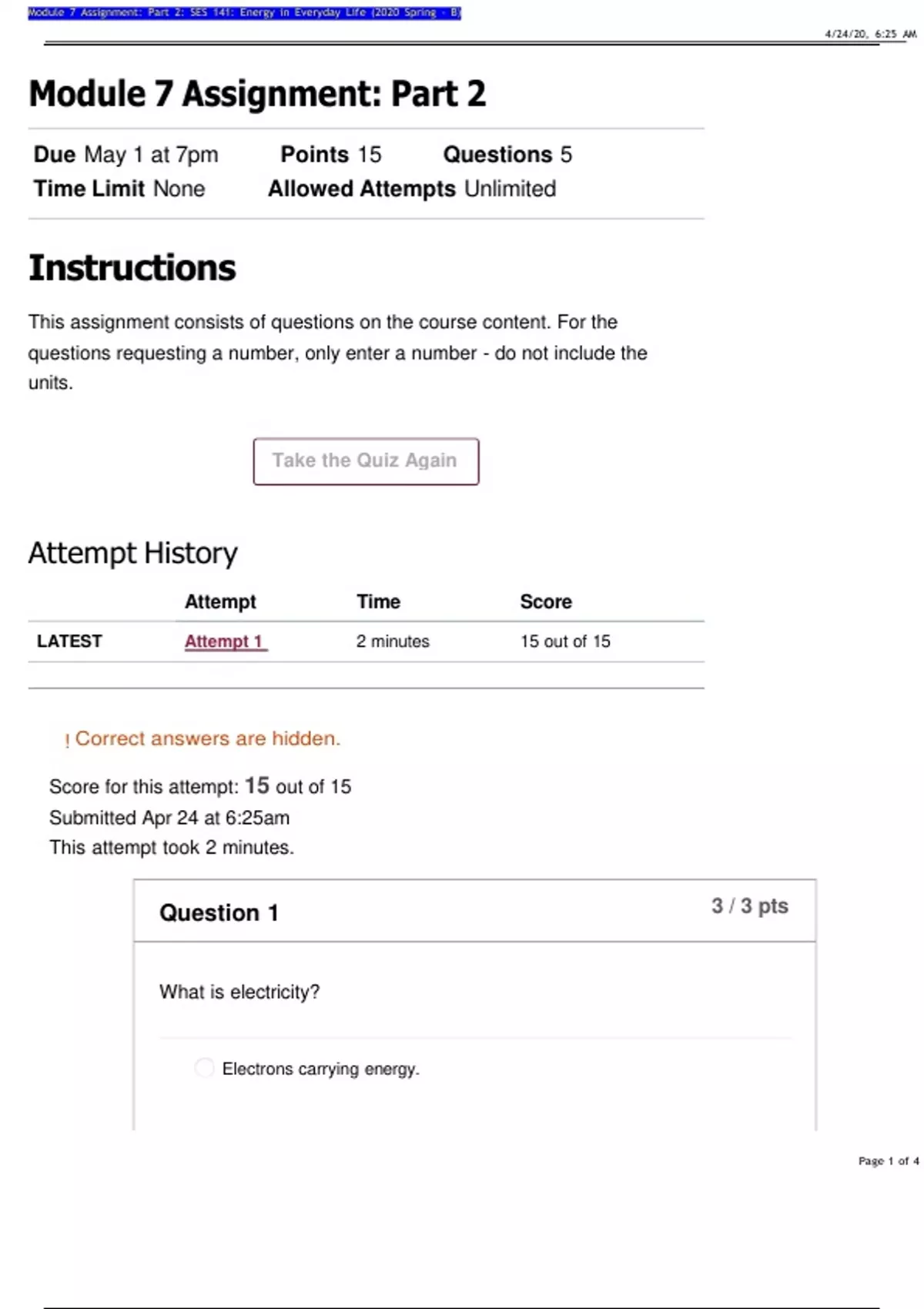 SES 141 Module 7 Assignment: Part 2 (Energy in Everyday Life) graded A+