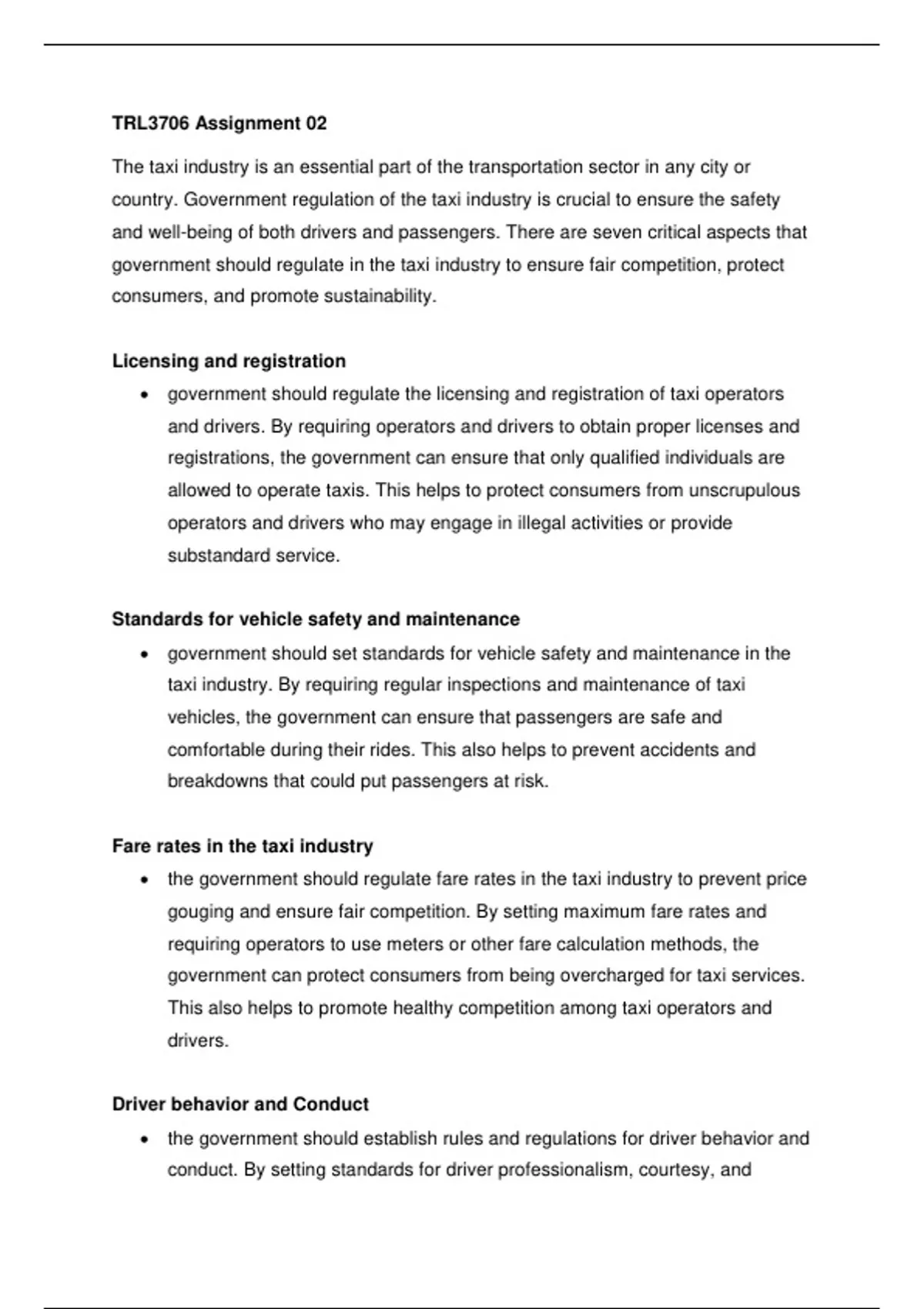 country. Government regulation of the taxi industry is crucial to ensure the safety