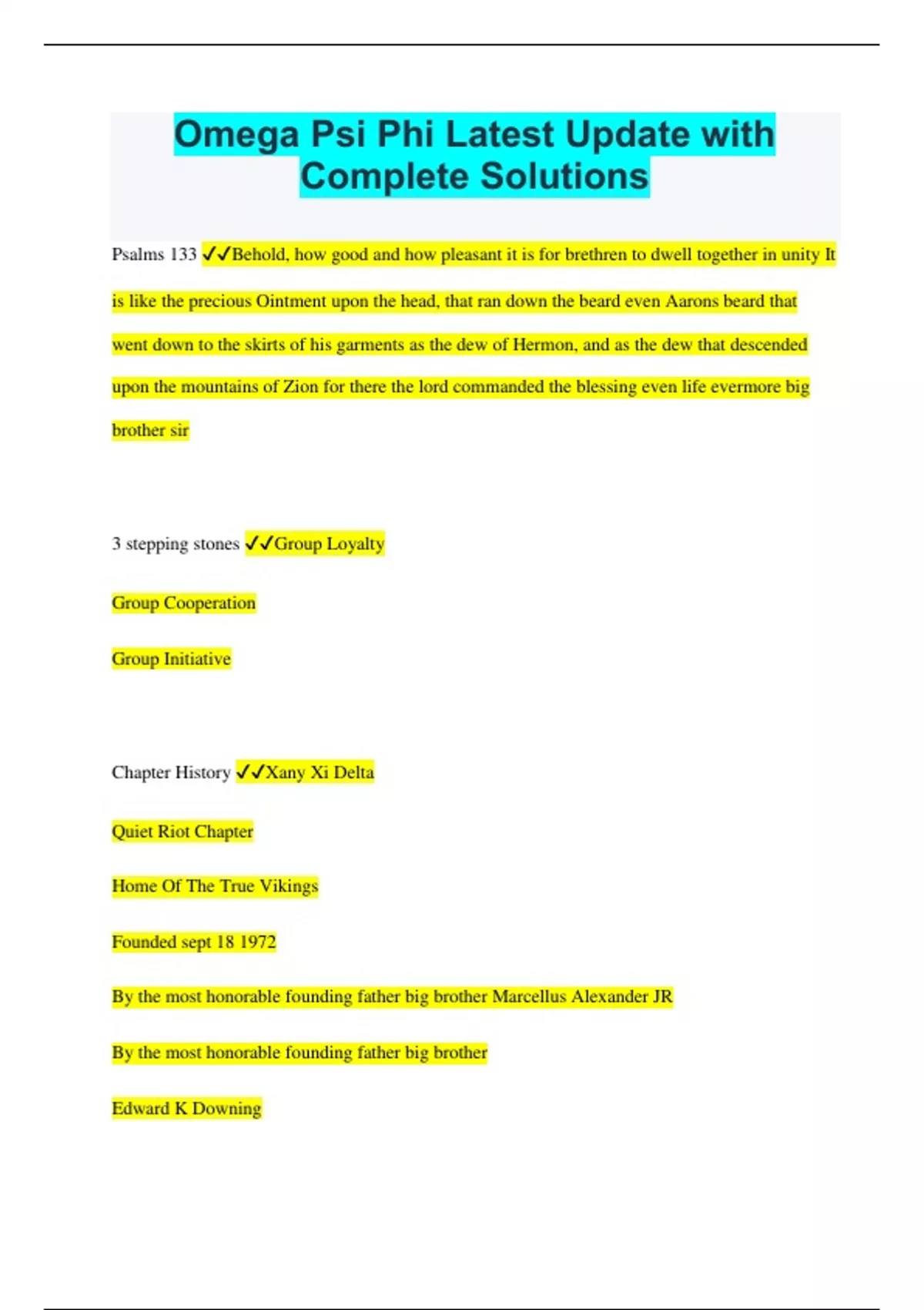 Omega Psi Phi Latest Update with Complete Solutions