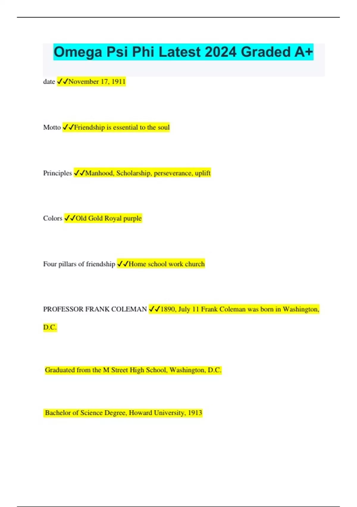 Omega Psi Phi Latest 2024 Graded A+