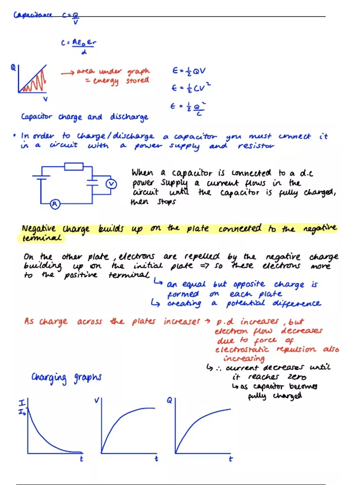 Summary Capacitance a level revision notes