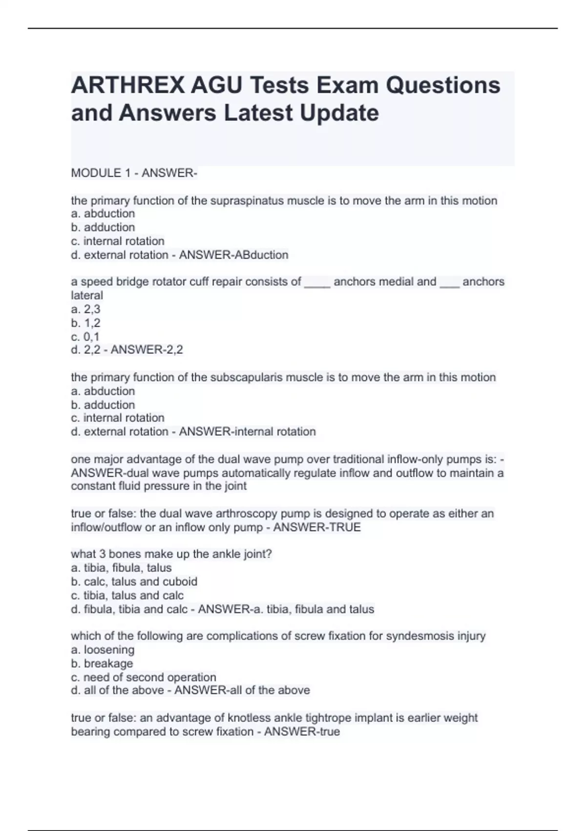 arthrex agu tests exam questions stuvia