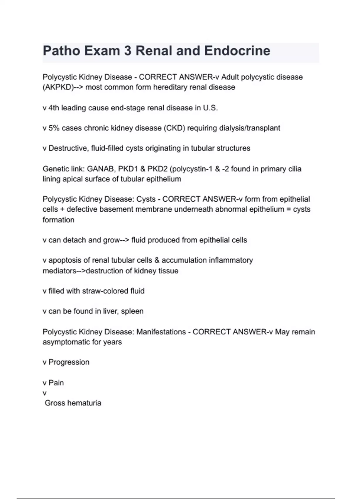 Patho Exam 3 Renal and Endocrine Questions & answers