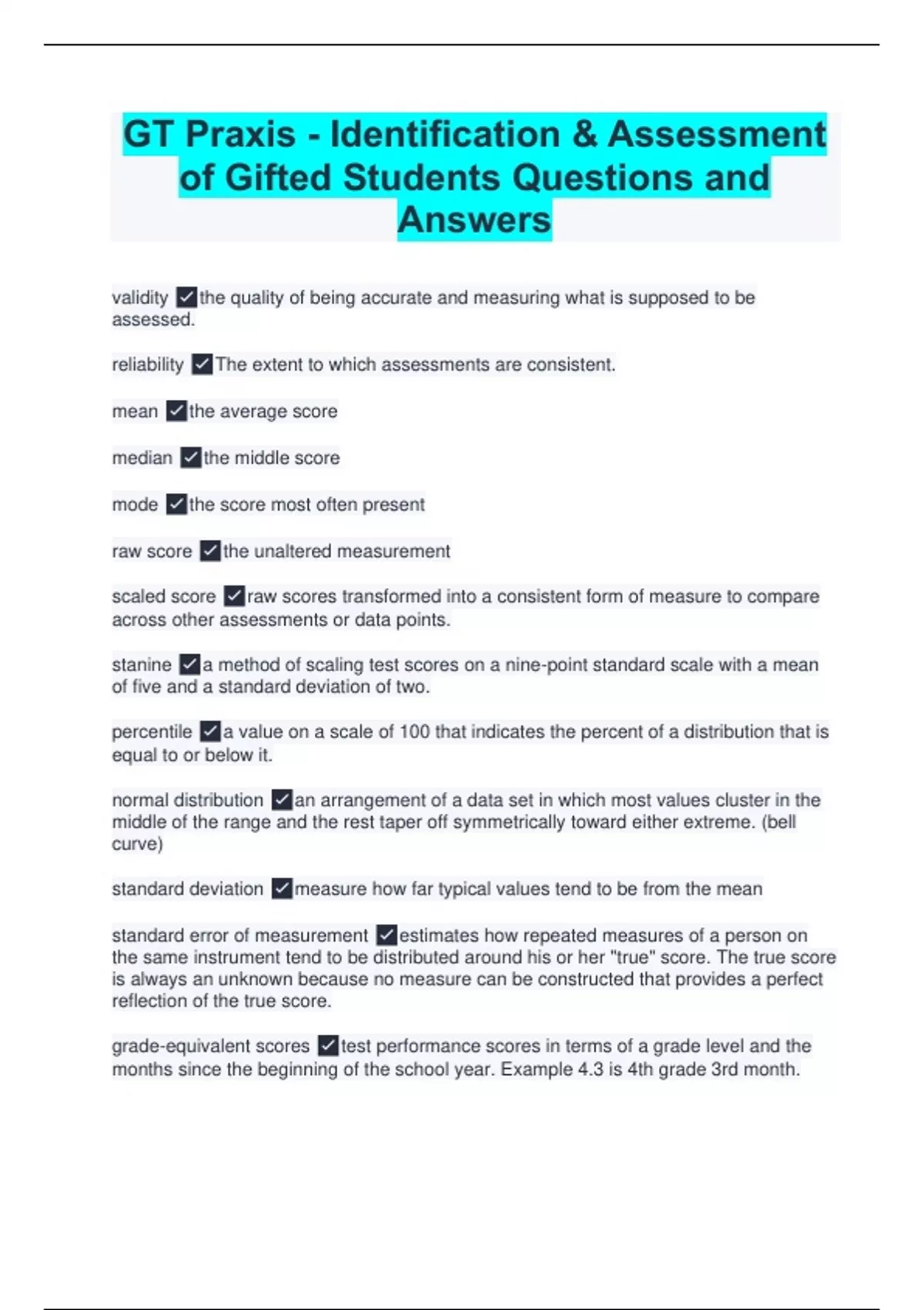 GT Praxis - Identification & Assessment of Gifted Students Questions and Answers