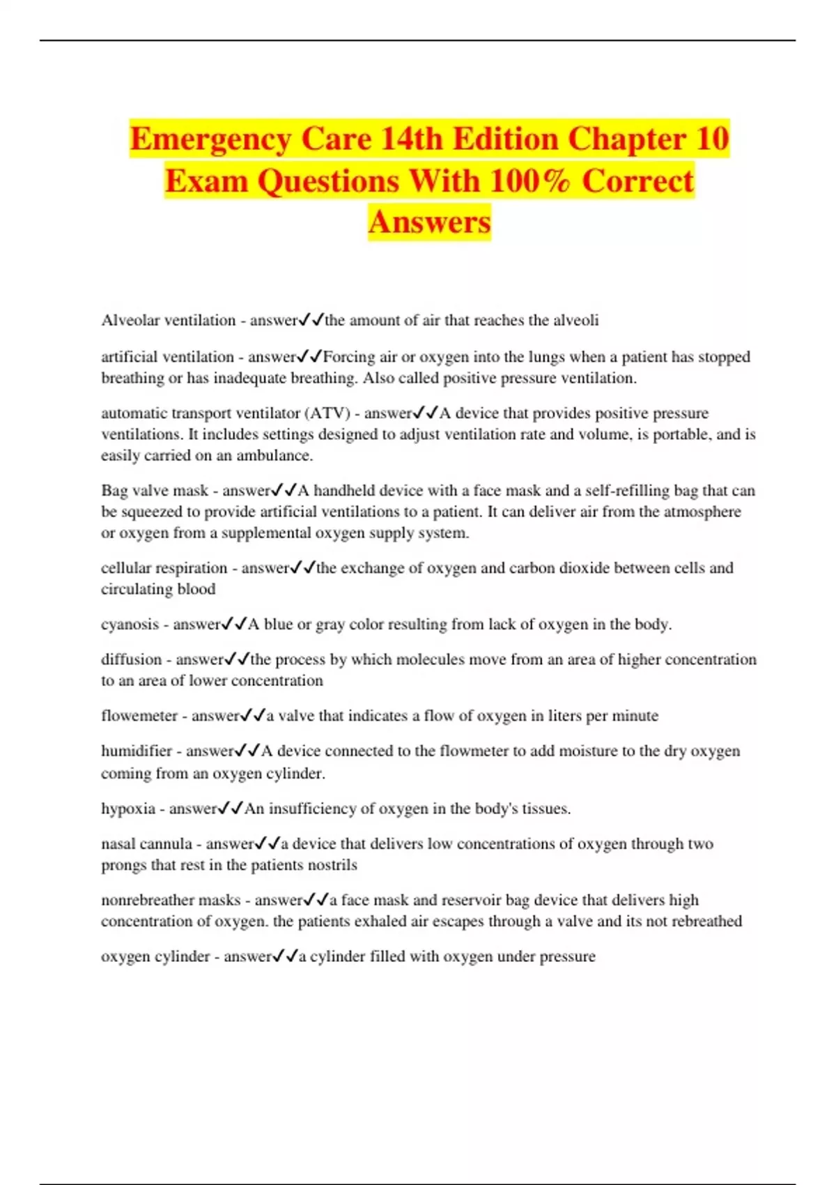 Emergency Care 14th Edition Chapter 10 Exam Questions With 100% Correct Answers