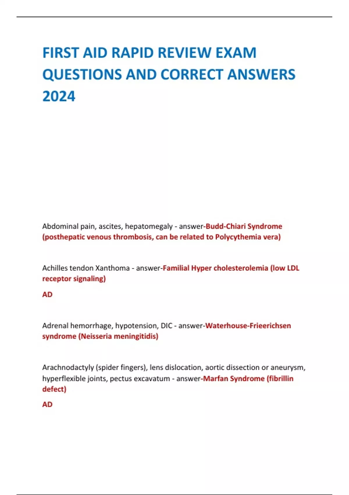 FIRST AID RAPID REVIEW EXAM QUESTIONS AND CORRECT ANSWERS 2024