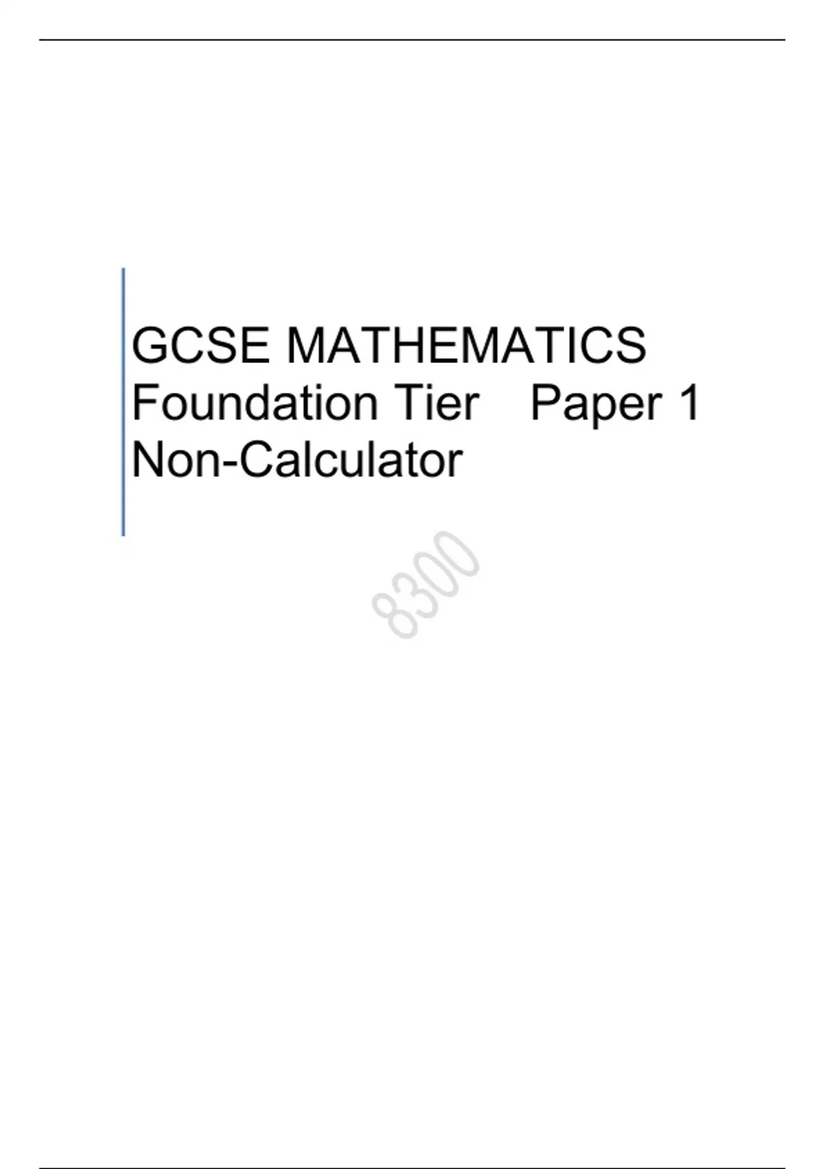 GCSE MATHEMATICS Foundation Tier Paper 1 Non-Calculator