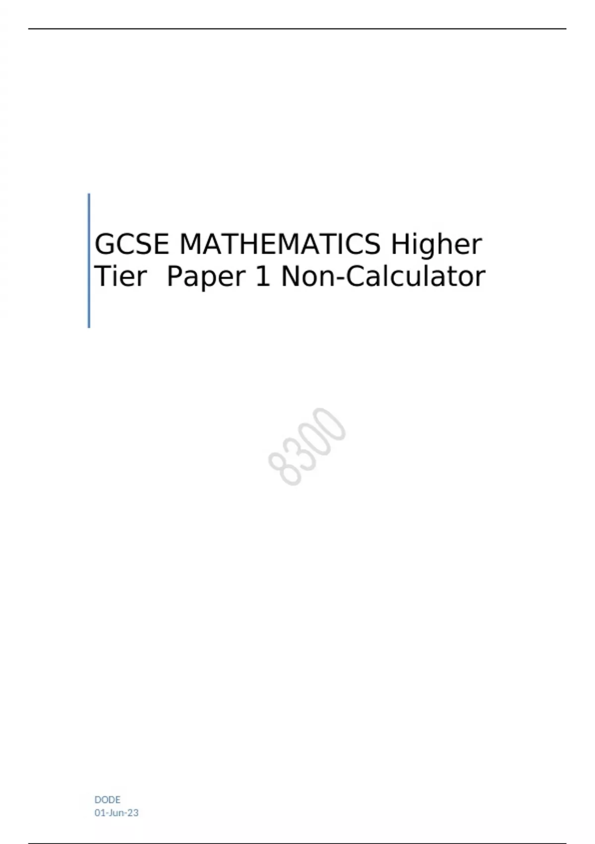 GCSE MATHEMATICS Higher Tier Paper 1 Non-Calculator