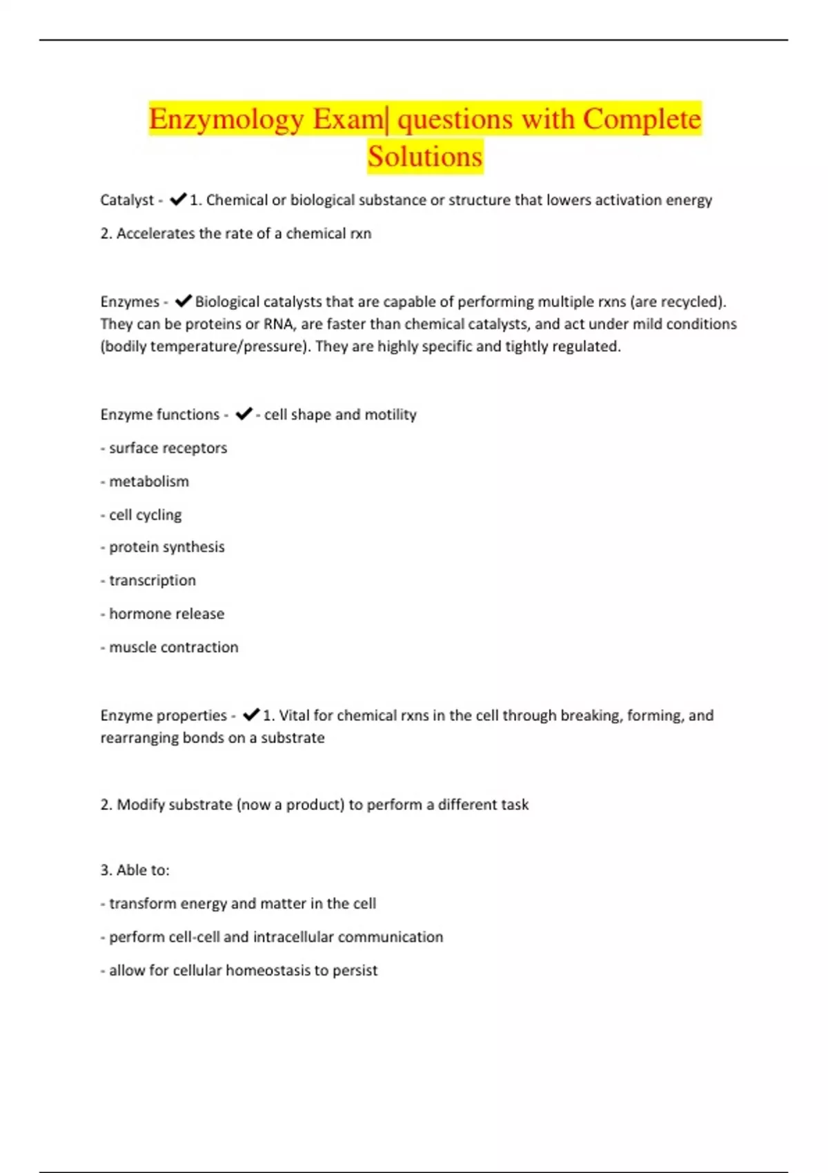 enzymology exam questions with complete solutions