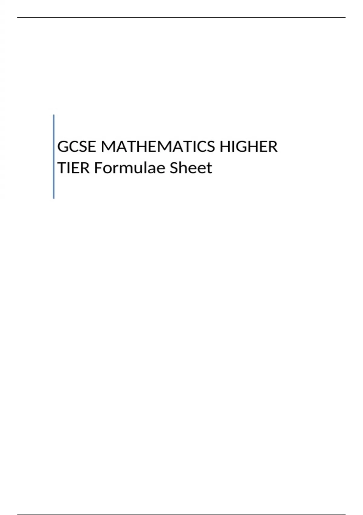 GCSE MATHEMATICS HIGHER TIER Formulae Sheet