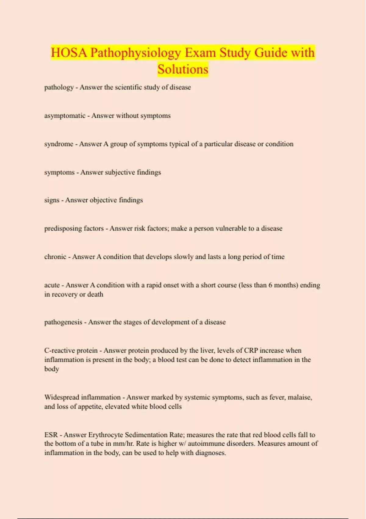 HOSA Pathophysiology Exam Study Guide with Solutions