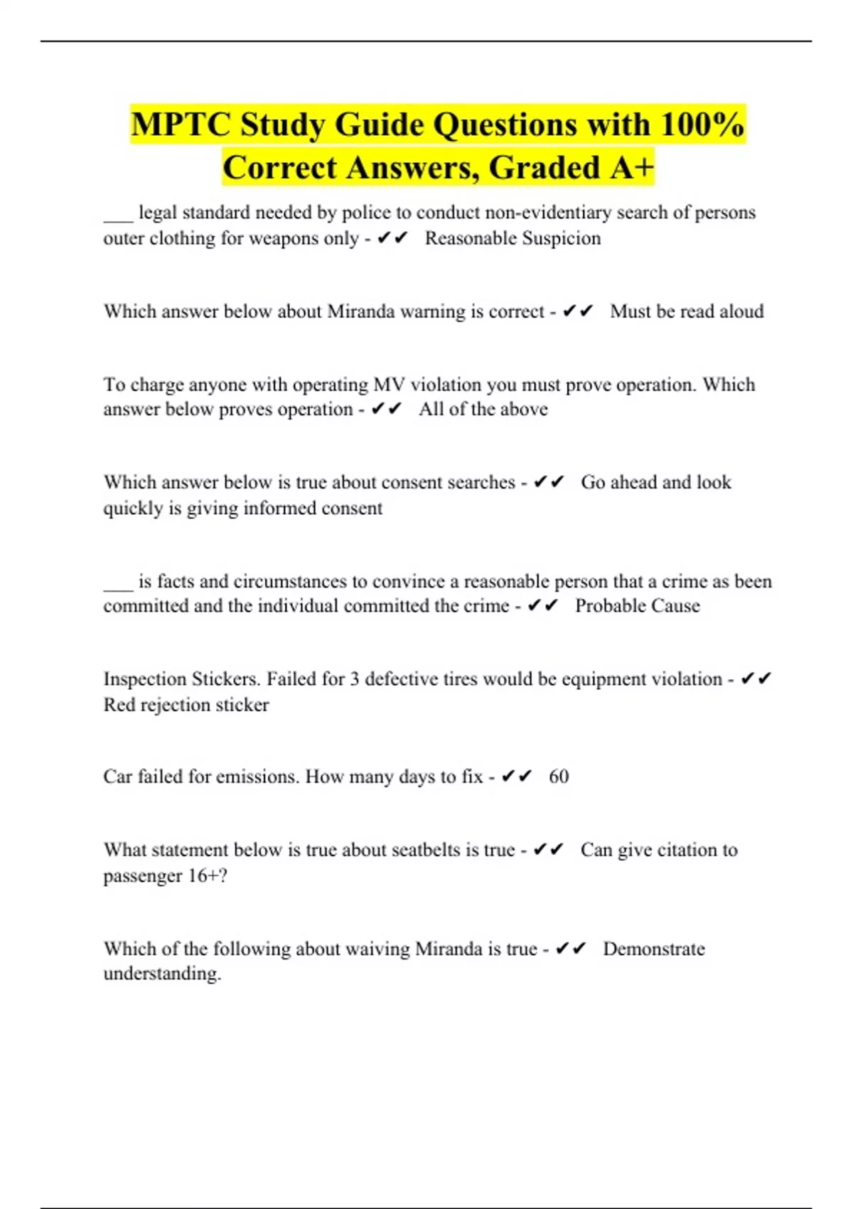 MPTC Study Guide Questions with 100% Correct Answers, Graded A+