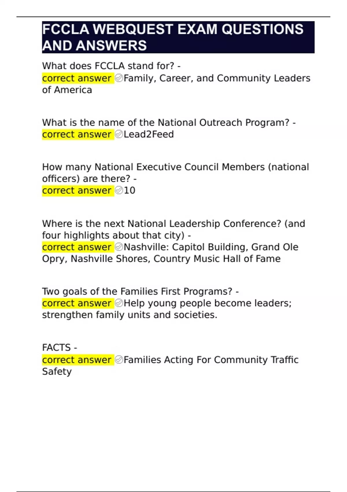 FCCLA WEBQUEST EXAM QUESTIONS AND ANSWERS