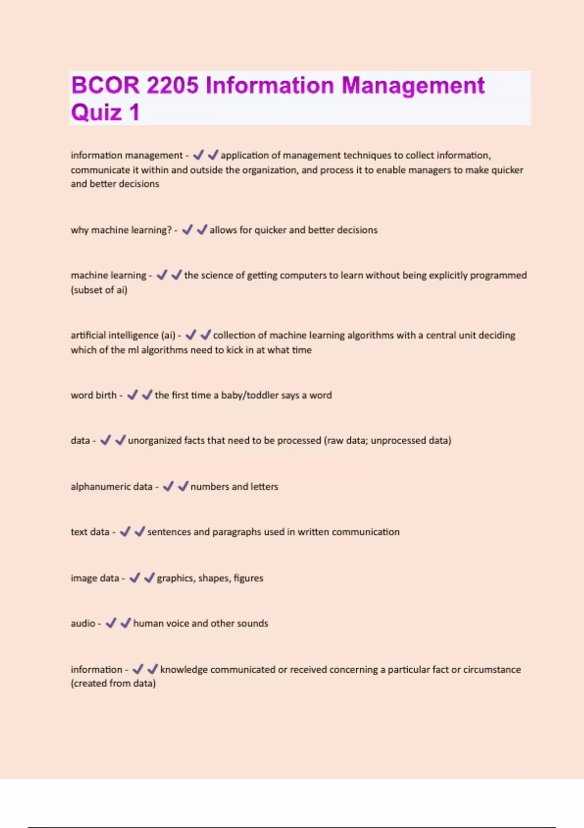 BCOR 2205 Information Management Quiz 1 Questions & Answers Already Passed!!