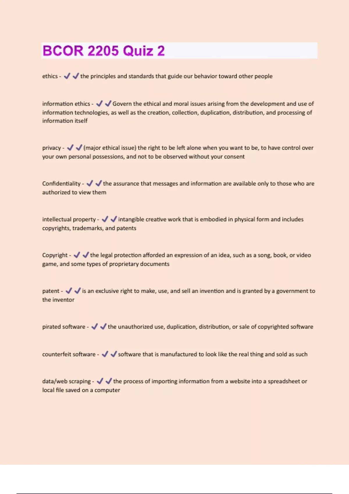 BCOR 2205 Quiz 2 Questions and Answers with complete solution