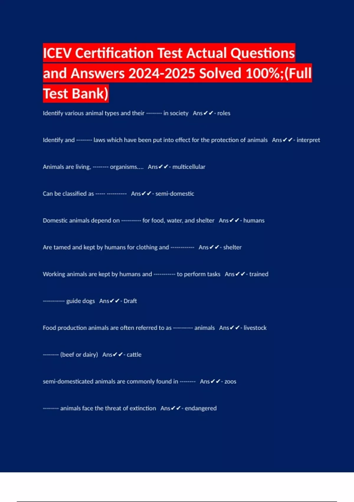 ICEV Certification Test Actual Questions and Answers Solved 100%;(Full Test Bank)