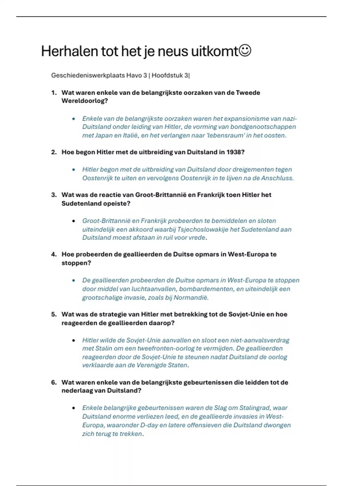 Leer razendsnel Geschiedeniswerkplaats Havo 3 Hoofdstuk 3 met deze 43 toetsvragen met antwoorden. Dit zijn vragen puur en gericht op de kennis van hoofdstuk 3, waarbij herhalende vragen in andere vraagstelling helpen de stof nog beter te begrijpen en sneller tot je te nemen. Wil je een goed cijfer halen ..... dan is dit je beste wapen! Succes met leren.