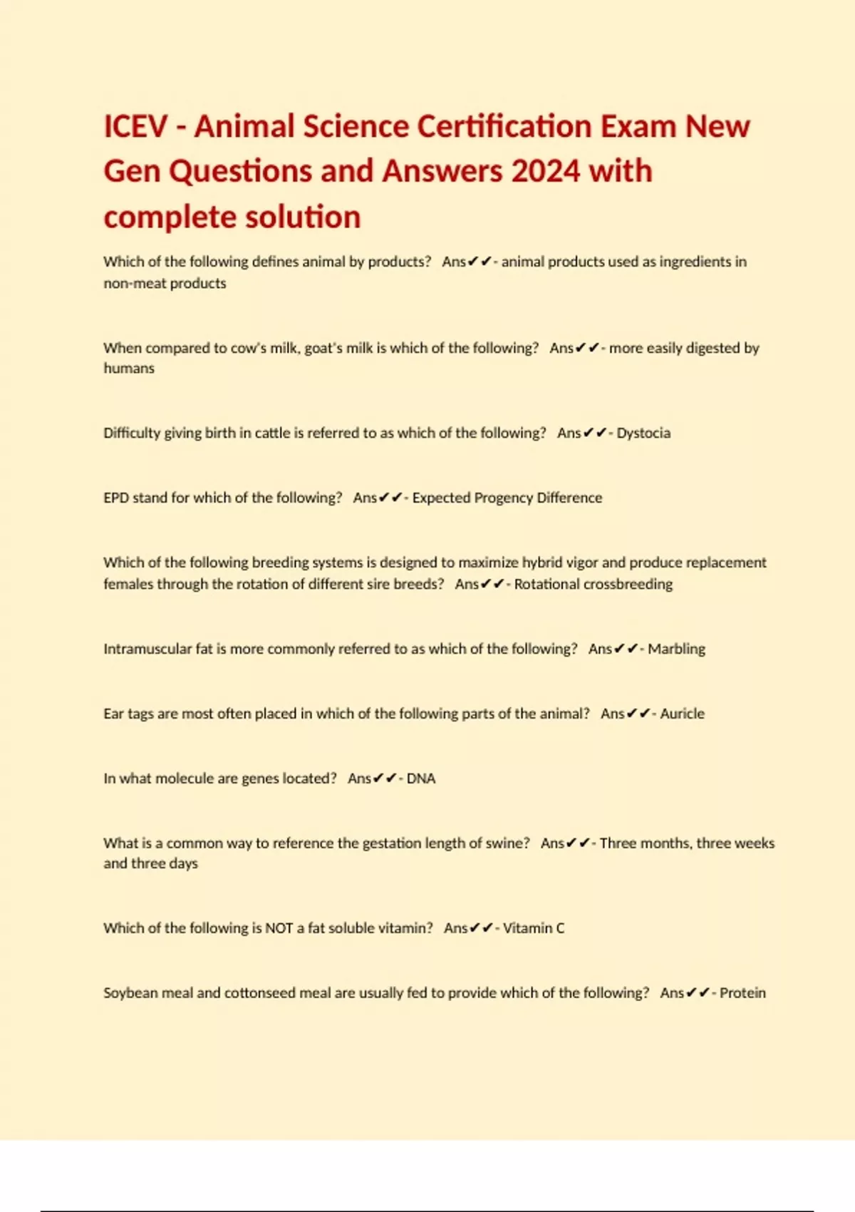 ICEV - Animal Science Certification Exam New Gen Questions and Answers 2024 with complete solution