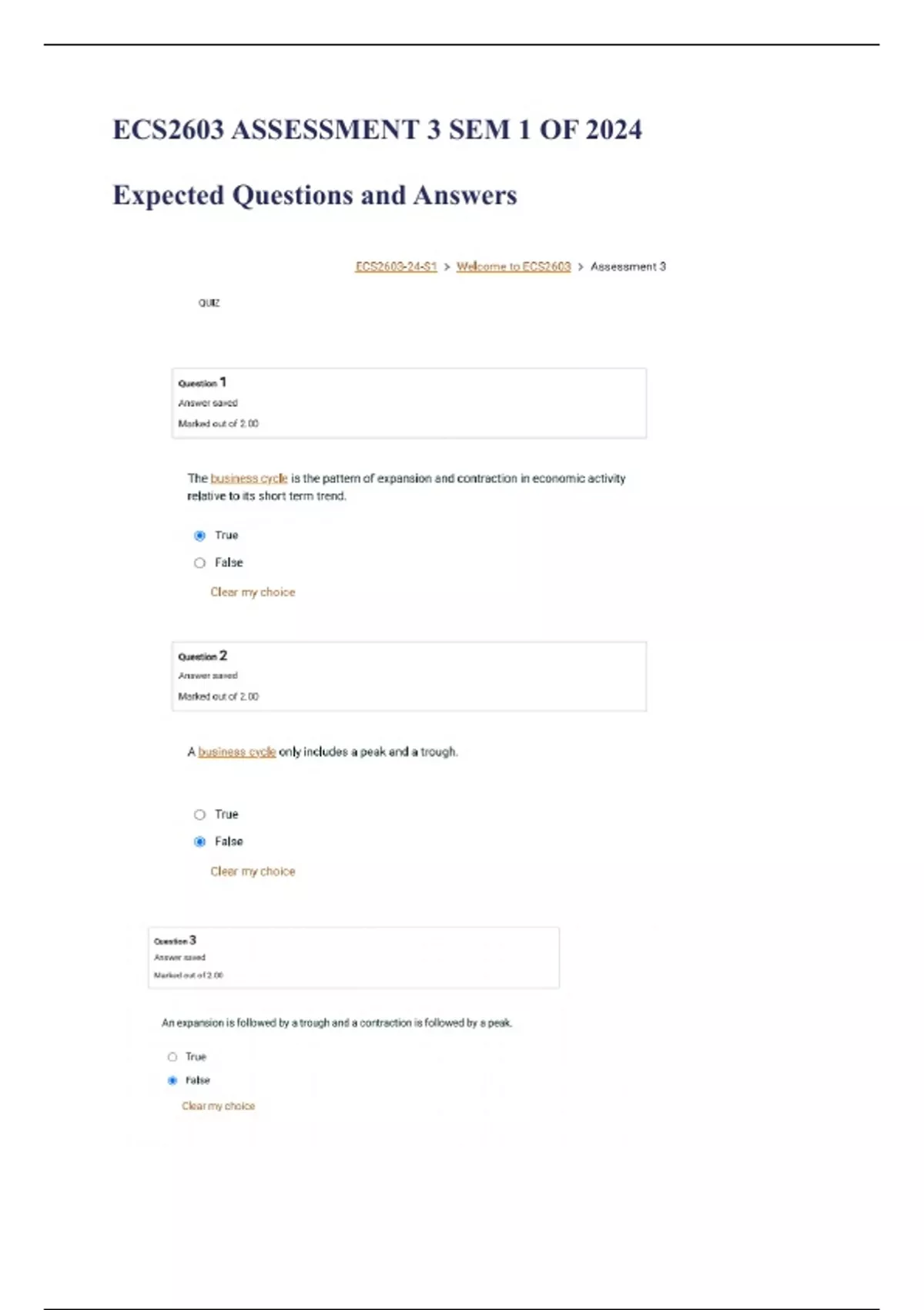ECS2603 ASSESSMENT 3 SEM 2 OF 2024 (826527) Expected Answers