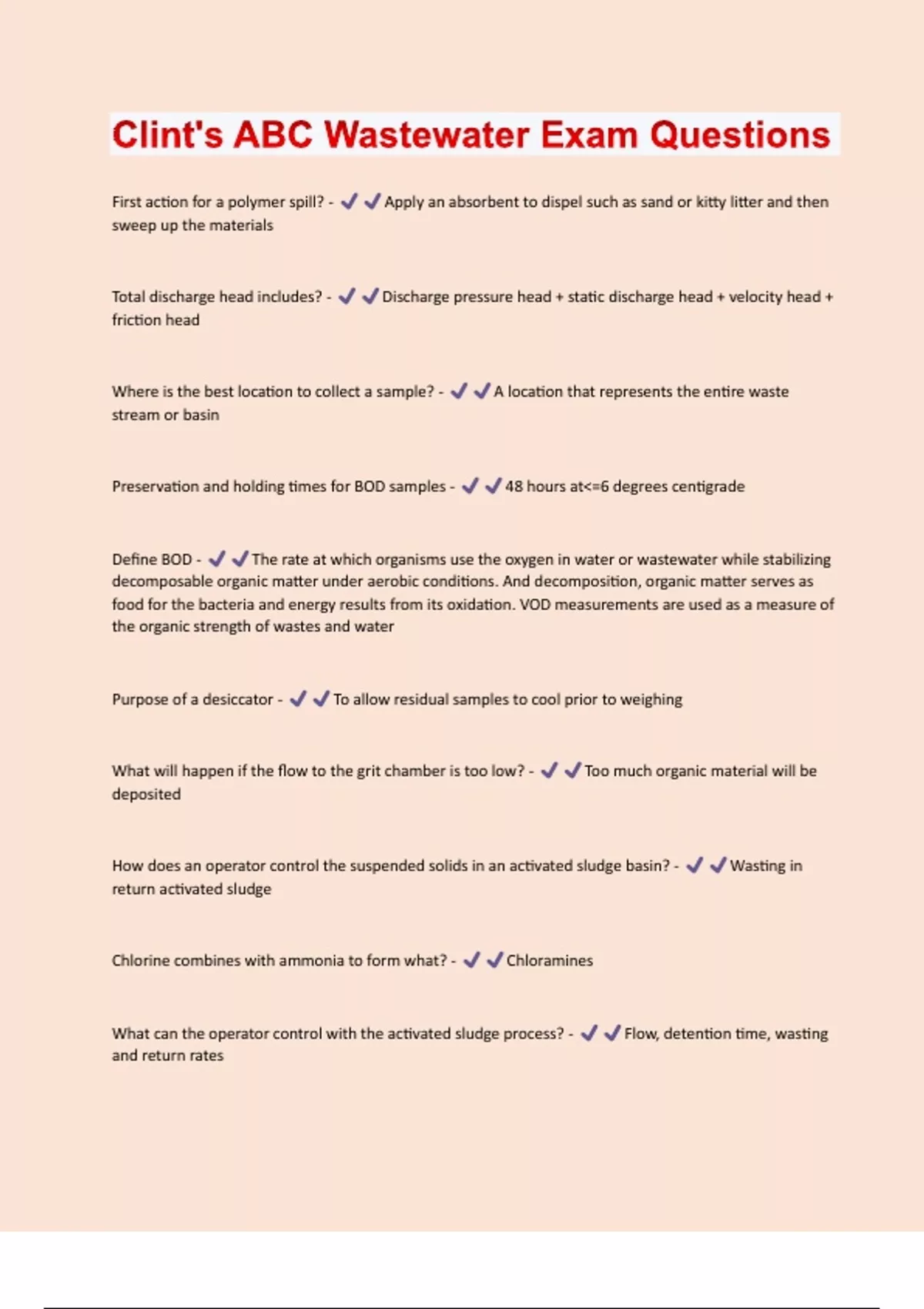 Clint's ABC Wastewater Exam Questions & Answers Already Passed!!