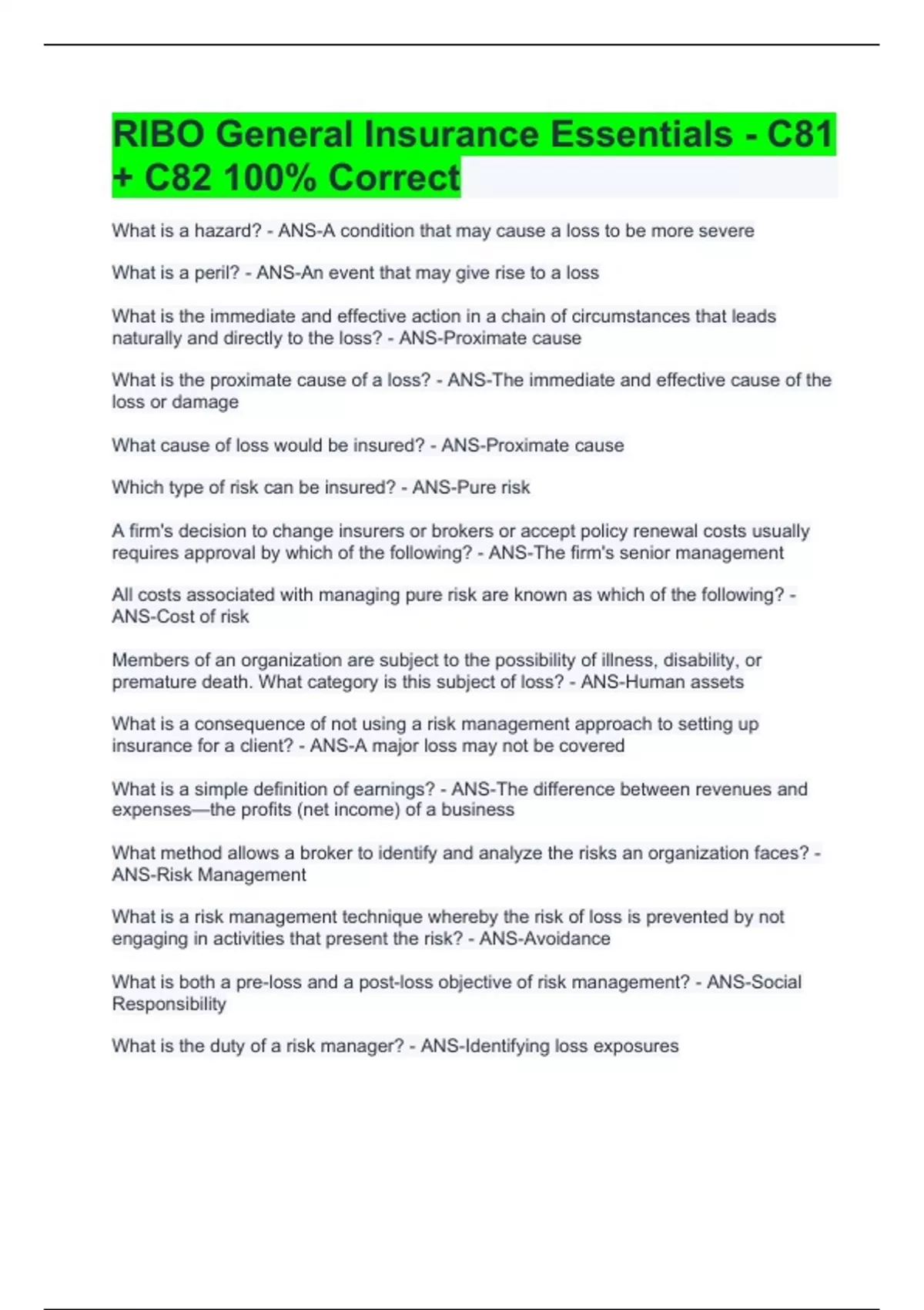 RIBO General Insurance Essentials - C81 + C82 100% Correct