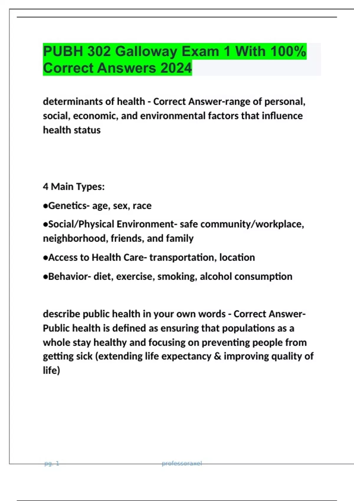 PUBH 302 Galloway Exam 1 With 100% Correct Answers 2024
