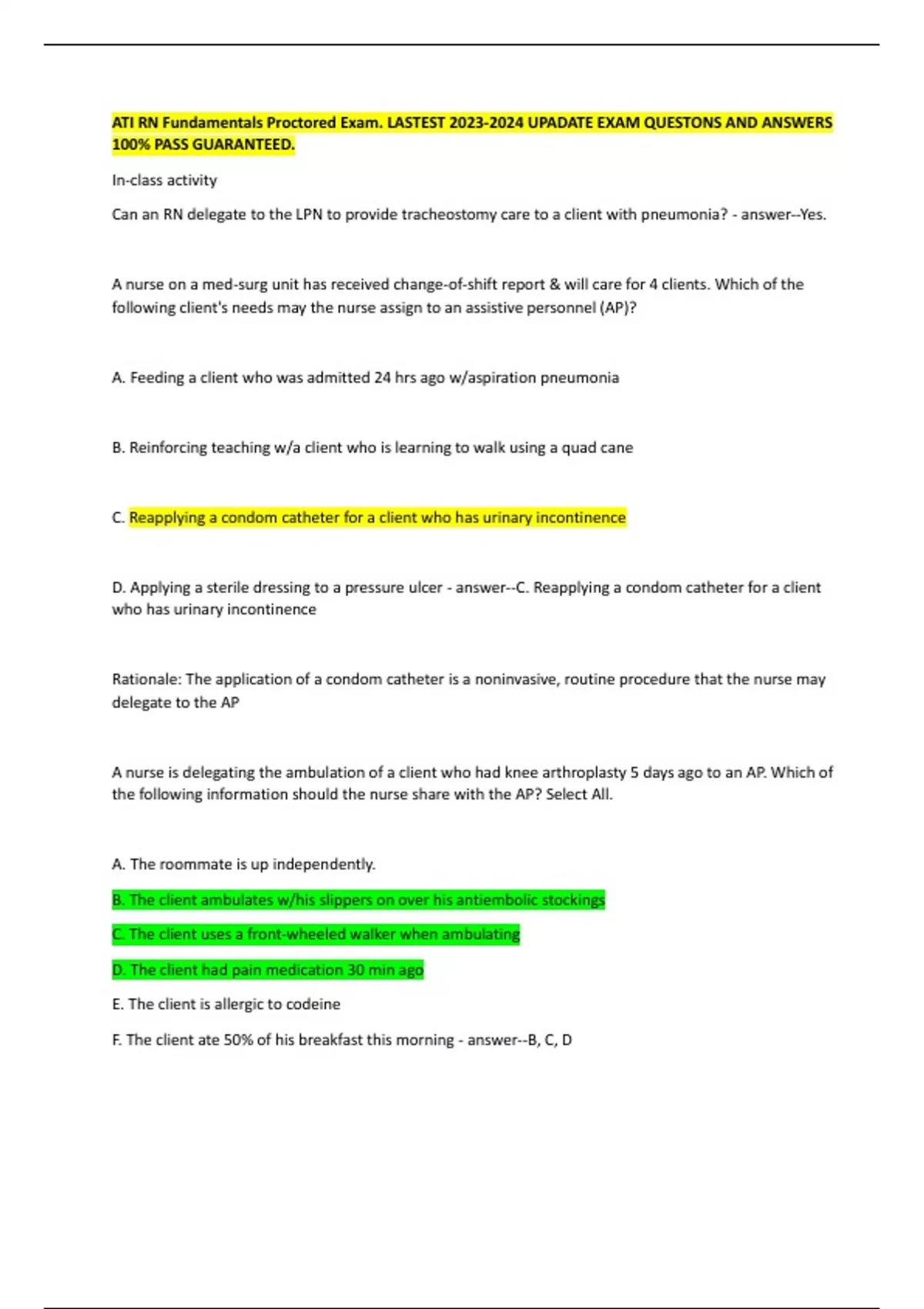 ATI RN Fundamentals Proctored Exam. LASTEST UPADATE EXAM QUESTONS AND ANSWERS 100% PASS GUARANTEED ALRREADY GRADED A+