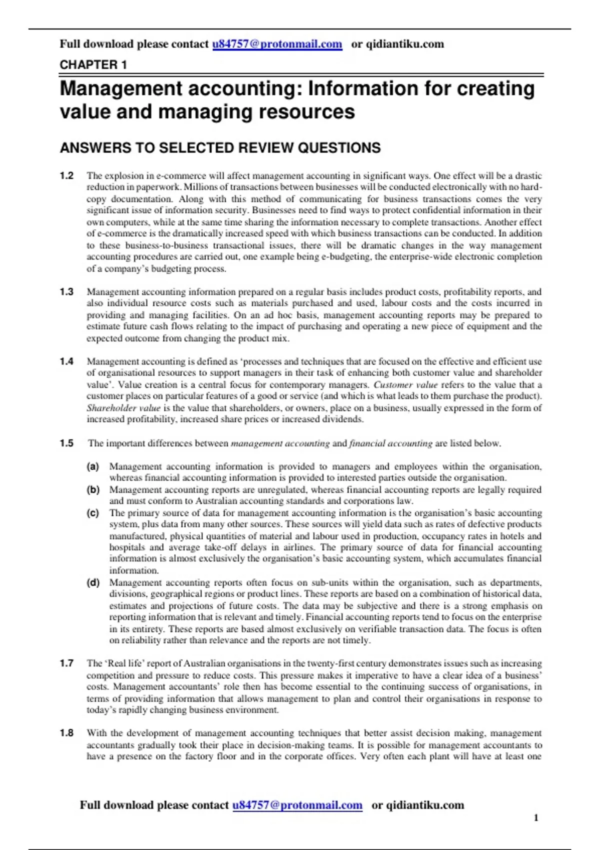 1.8 With the development of management accounting techniques that better assist decision making, management