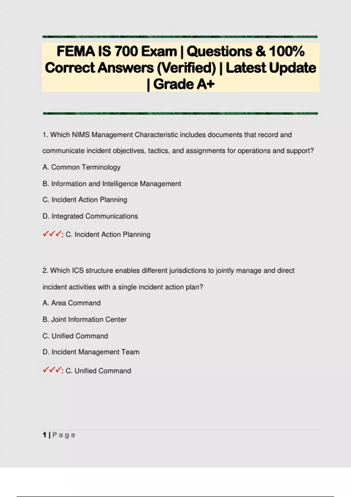 FEMA IS 700 Exam | Questions & 100% Correct Answers (Verified) | Latest Update | Grade A+