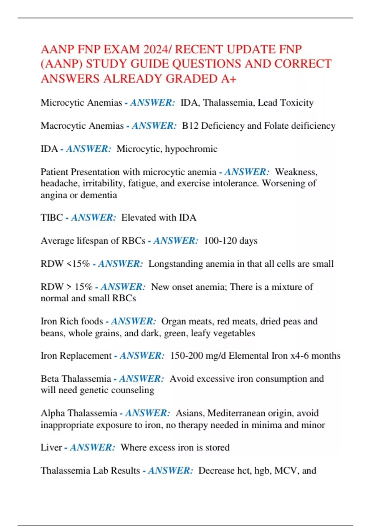 AANP FNP EXAM 2024/ RECENT UPDATE FNP (AANP) STUDY GUIDE QUESTIONS AND CORRECT ANSWERS ALREADY GRADED A+