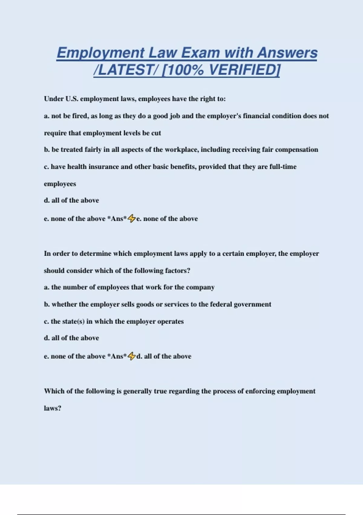 Employment Law Exam with Answers /LATEST/ [100% VERIFIED]