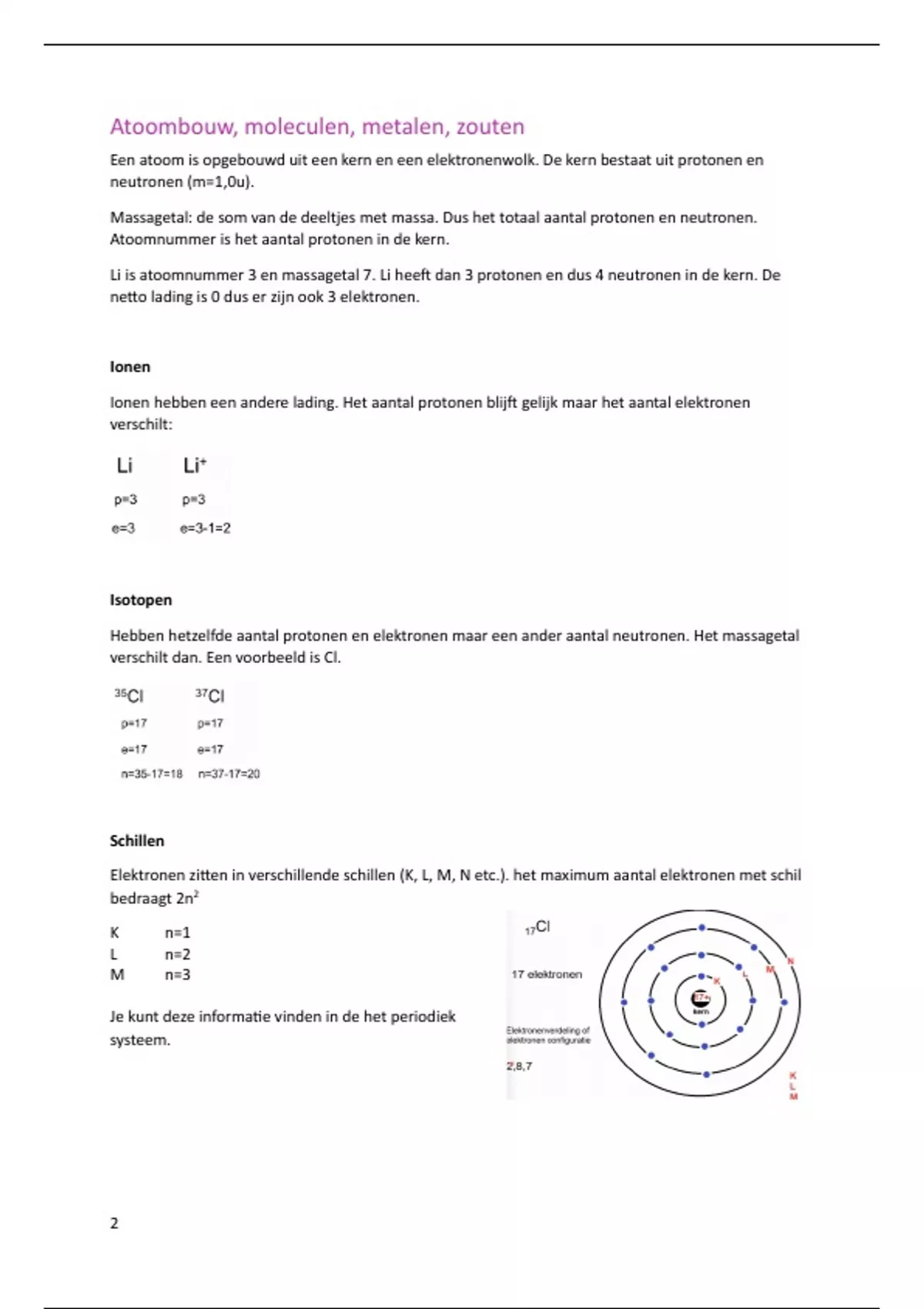 Elektronen zitten in verschillende schillen (K, L, M, N etc.). het maximum aantal elektronen met schil