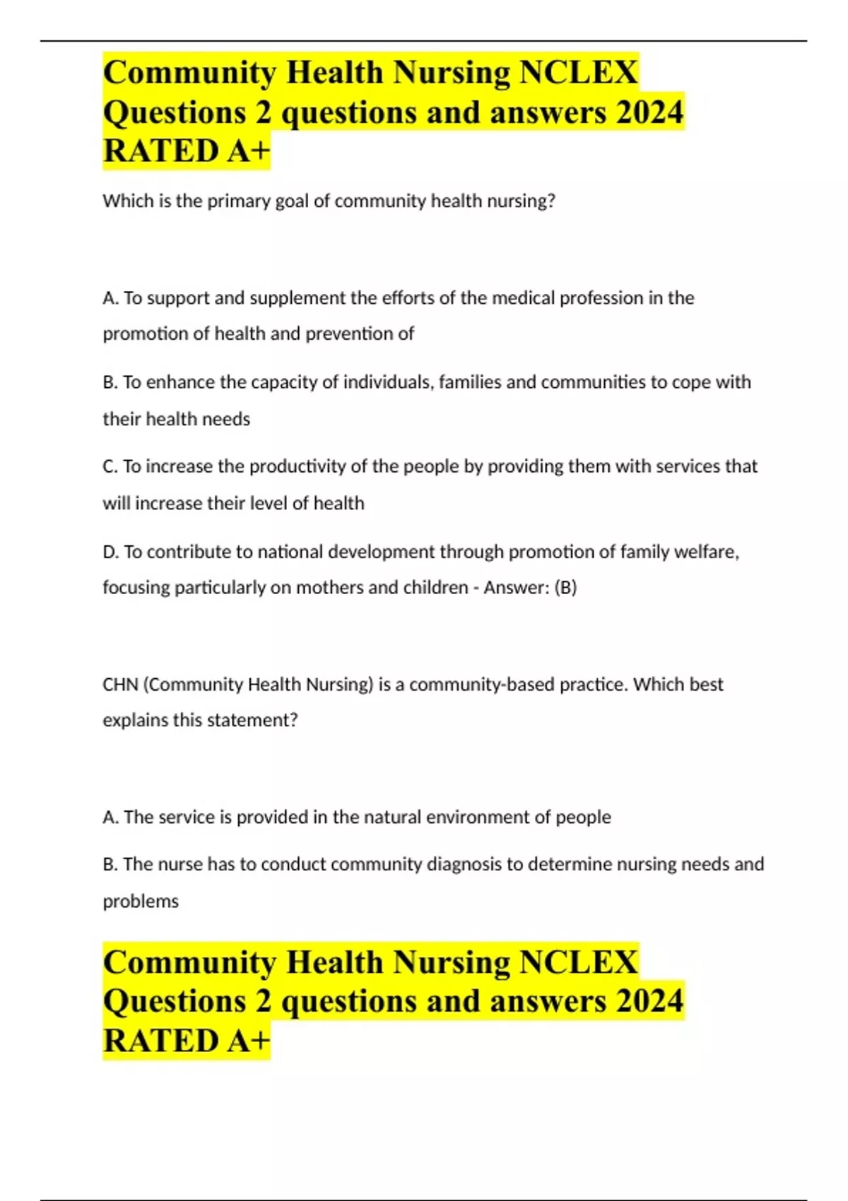 Community Health Nursing NCLEX Questions 2 questions and answers 2024 RATED A+