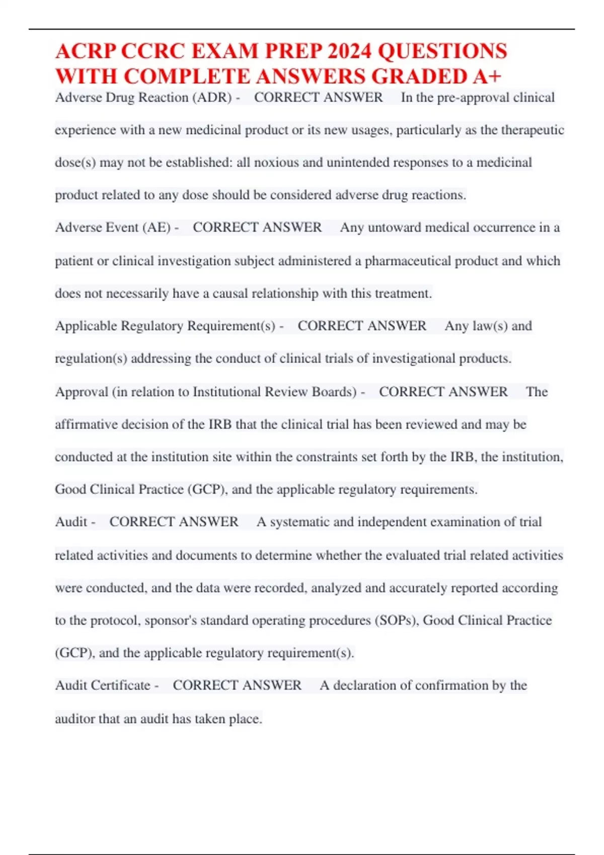 ACRP CCRC EXAM PREP 2024 QUESTIONS WITH COMPLETE ANSWERS GRADED A+