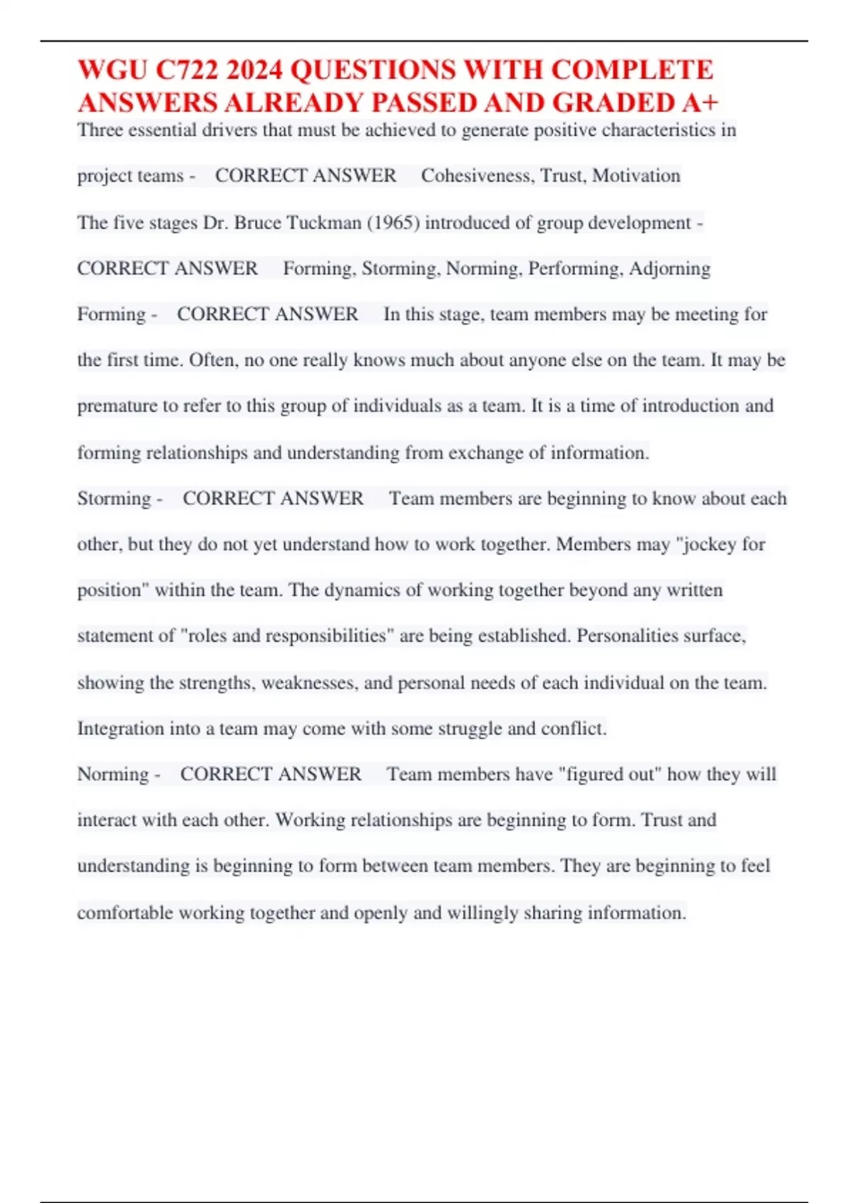 project teams - CORRECT ANSWER Cohesiveness, Trust, Motivation