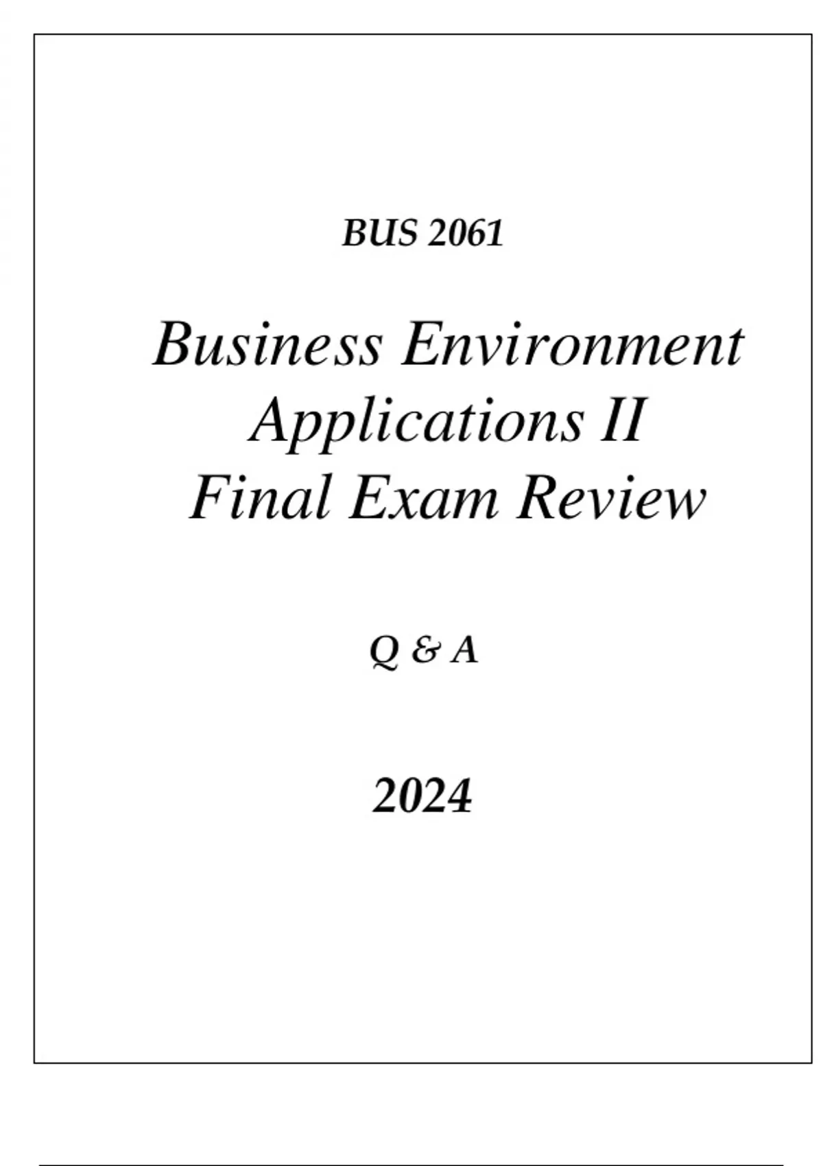 (WGU D079) BUS 2061 BUSINESS ENVIRONMENT APPLICATIONS II FINAL EXAM REVIEW Q & A(WGU D079) BUS 2061 BUSINESS ENVIRONMENT APPLICATIONS II FINAL EXAM REVIEW Q & A(WGU D079) BUS 2061 BUSINESS ENVIRONMENT APPLICATIONS II FINAL EXAM REVIEW Q & A