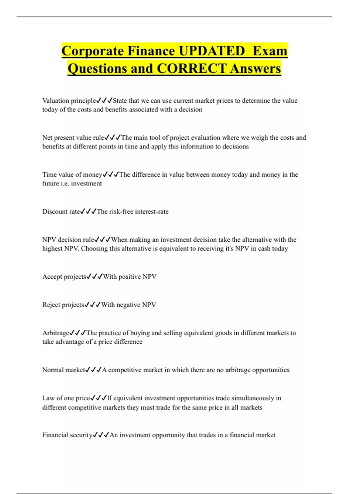 Corporate Finance UPDATED Exam Questions and CORRECT Answers