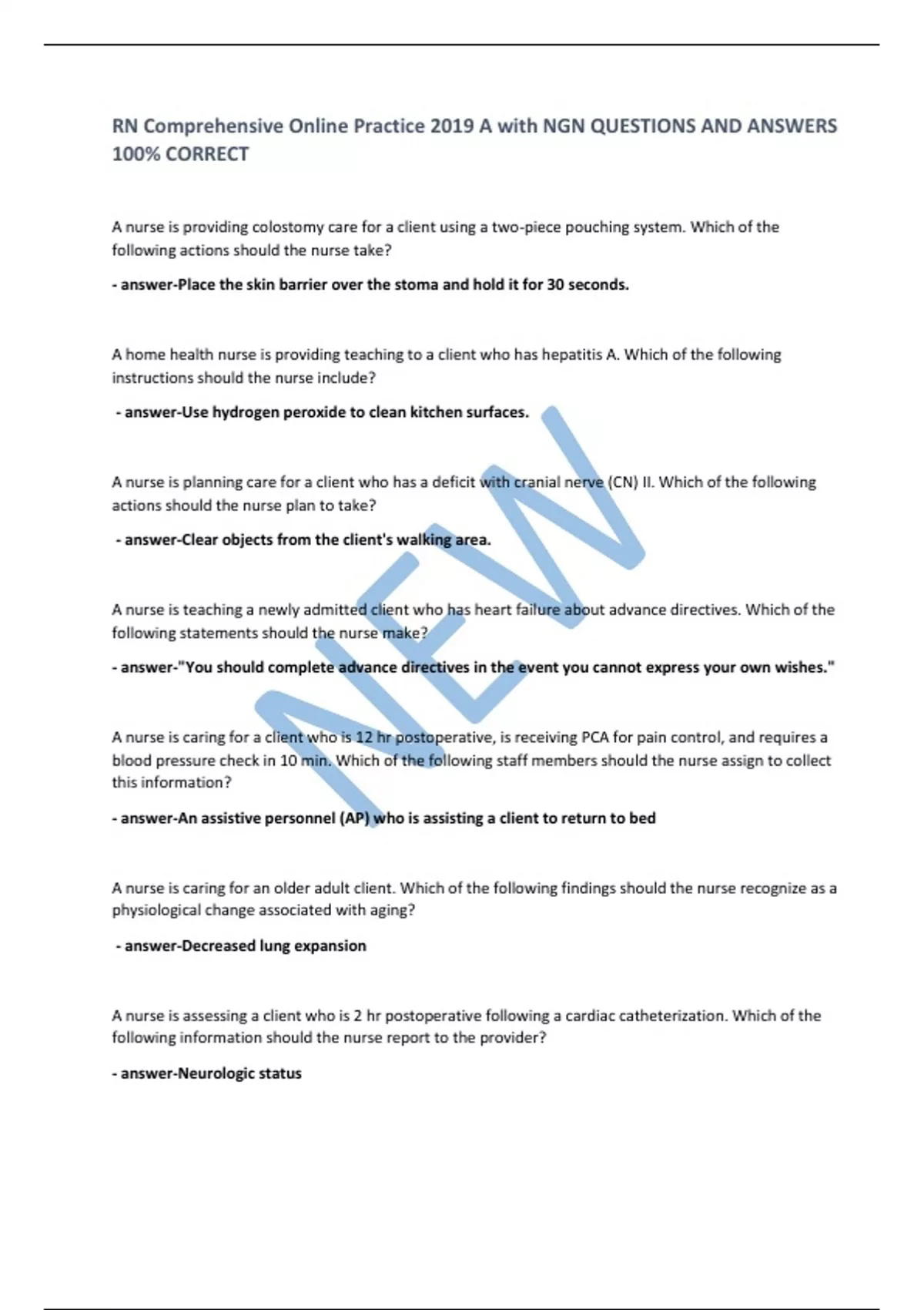 RN Comprehensive Online Practice 2019 A with NGN QUESTIONS AND ANSWERS 100% CORRECT