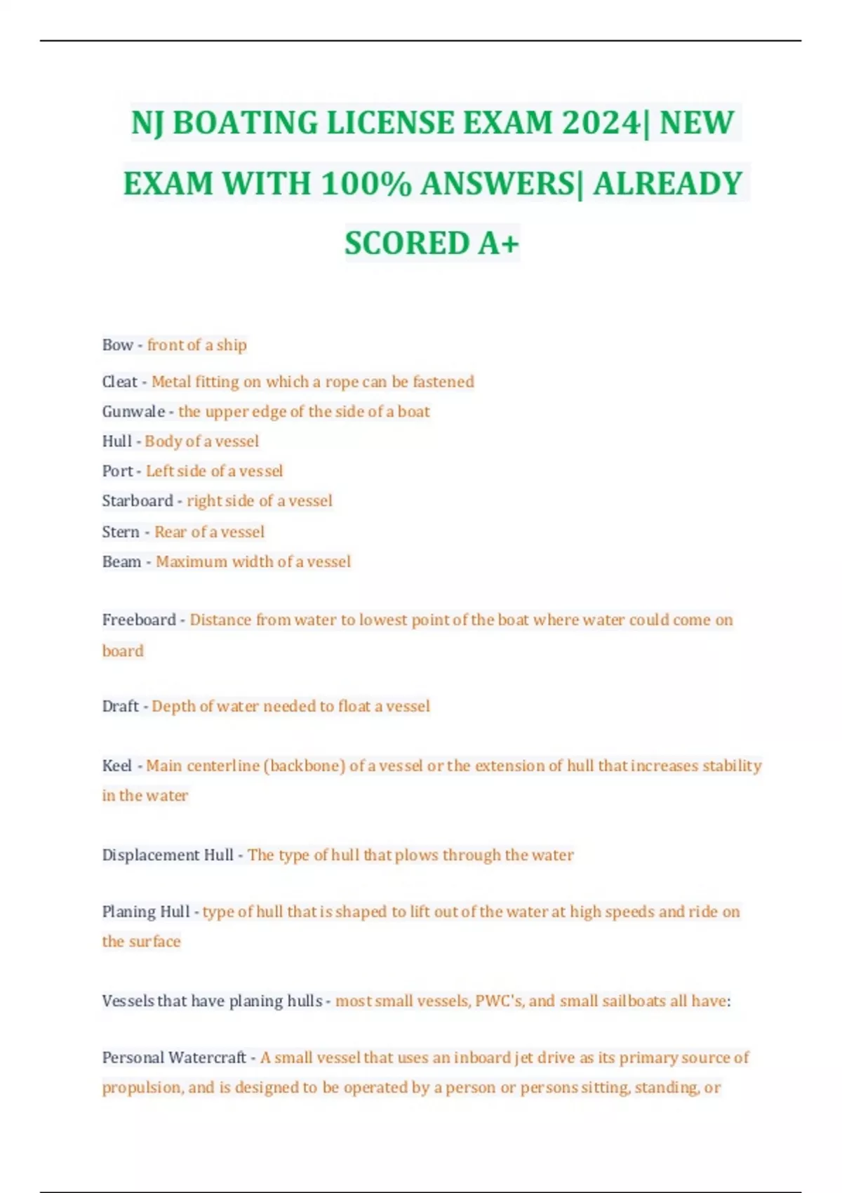 NJ BOATING LICENSE EXAM 2024| NEW EXAM WITH 100% ANSWERS| ALREADY SCORED A+